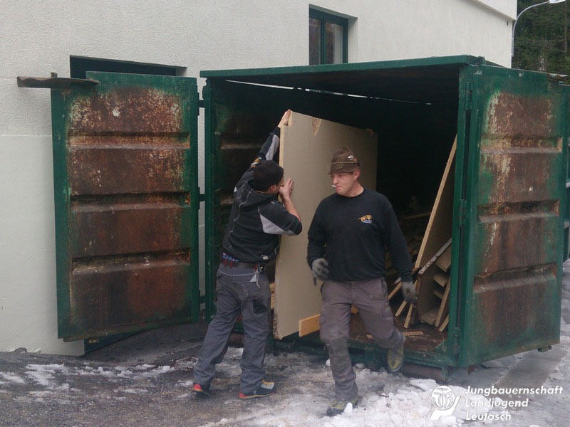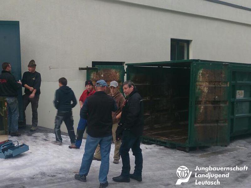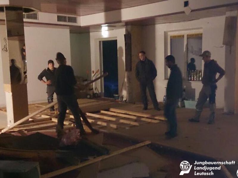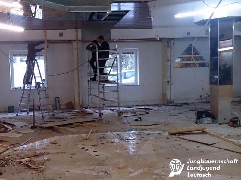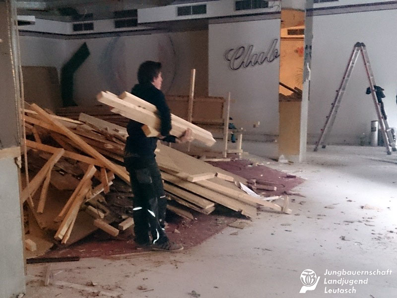 Den gemütlichen Winterschlaf wird es bei uns heuer definitiv nicht geben. Unsere Burschen starteten nämlich schon letzte Woche höchst motiviert ins neue Jahr, und das aus einem ganz bestimmten Grund: Nachdem die Leutascher Jungbauern schon seit vielen Jahren auf der Suche nach einer geeigneten Vereinsräumlichkeit sind und auch schon mehrmals überlegt haben, dafür selbst ein kleines Häuschen aufzustellen, wurde uns nun von der Gemeinde Leutasch die ehemals als Disco verwendete, aber mittlerweile schon jahrelang unbenützte Arena13 in Weidach, als Vereinslokal zur Verfügung gestellt.
