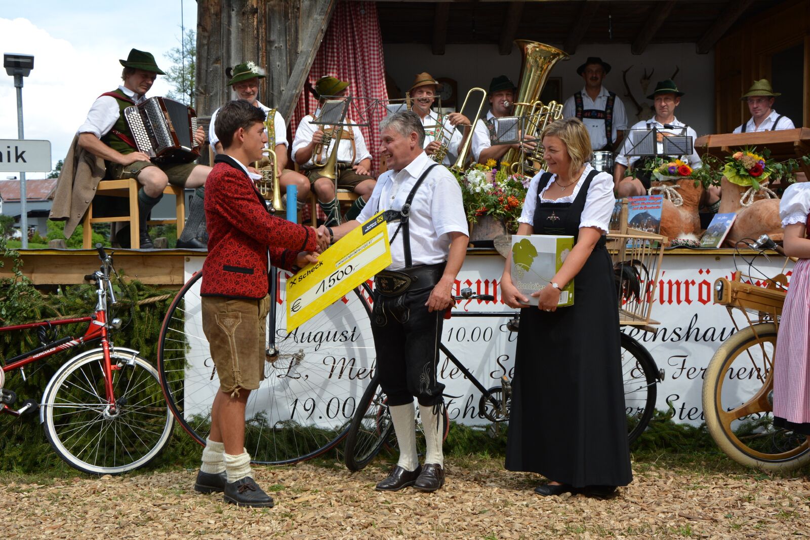 Vor gut einem Jahr wurde der Verein der Leutascher Kinderplattler gegründet, welcher mittlerweile unter dem Namen „D‘Wetterstoaner Schuachplattler“ läuft.  Seit da an „tanzen“ sie bei zahlreichen Veranstaltungen in der Region auf und sorgen dort für jede Menge Begeisterung. Auch bei unserem diesjährigen Osterball am 16. April 2017 waren sie dabei und machten den Auftanz gemeinsam mit uns Jungbauern zu einem Highlight. Zu den vielen Tanzproben, welche die jungen Plattler mit Freude meistern,  kommen natürlich auch andere  Herausforderungen auf den jungen Verein zu. So heißt es u.a. neue Trachten für die Kinder schneidern zu lassen. Die Leutascher Jungbauern wollen den neu gegründeten Verein und vor allem die vielen fleißigen und überaus motivierten Kinder unterstützen und spendeten € 1.500,- an die Kinderplattler. Die Übergabe des Schecks erfolgte dann beim Waldfest „anno dazumal“ der Steinrösler Sänger am 15. August 2017.  Nicht nur die Kinder, sondern auch die Leiter, welche so viel Herzblut in den Verein stecken, freuten sich über diese Überraschung. Wir, die Leutascher Jungbauern, wünschen den „Wetterstoaner Schuachplattlern“ alles Gute für die Zukunft und freuen uns auf weitere gemeinsame Auftritte.